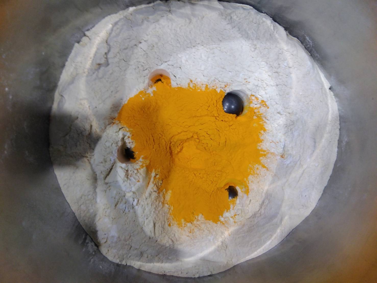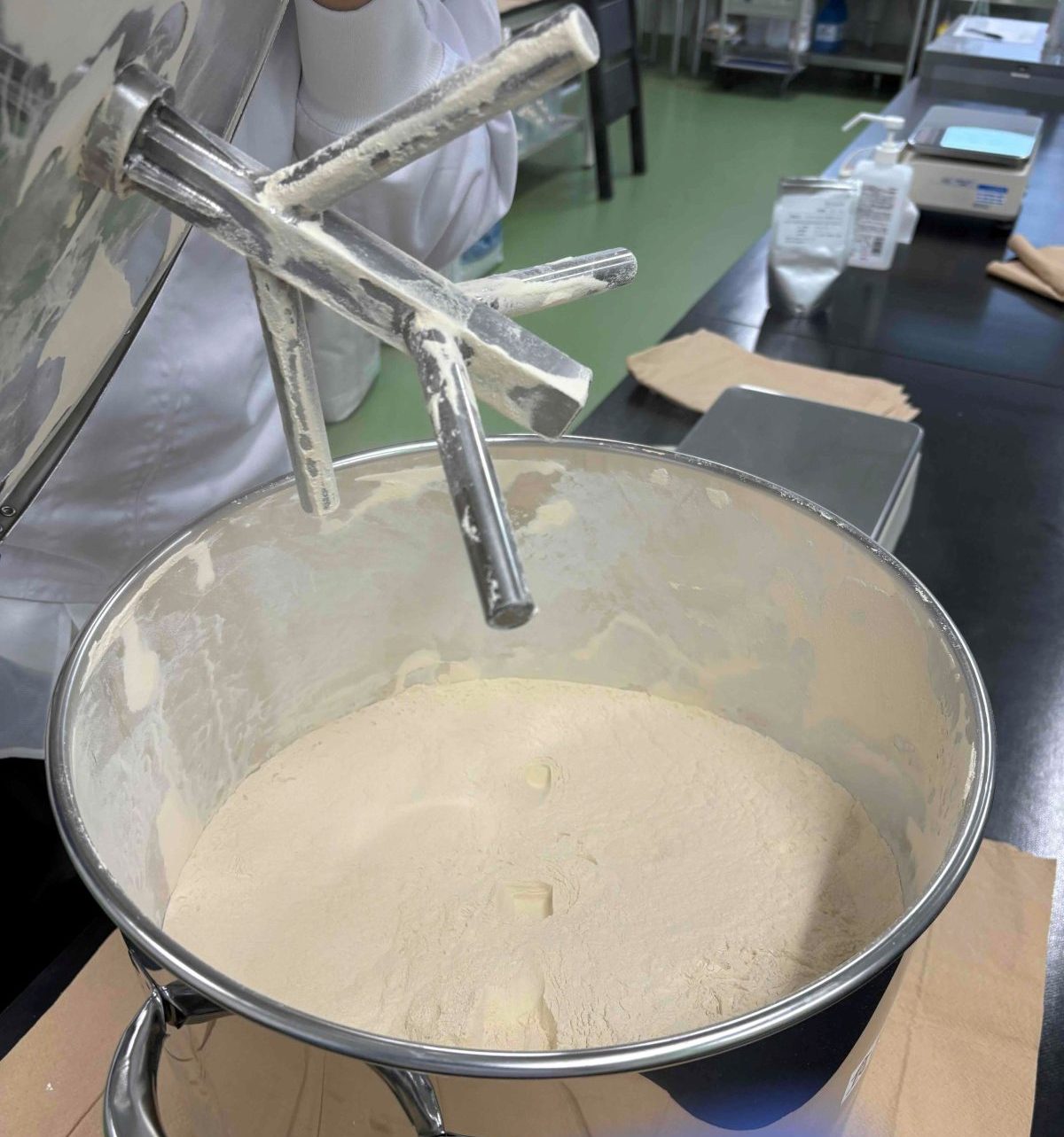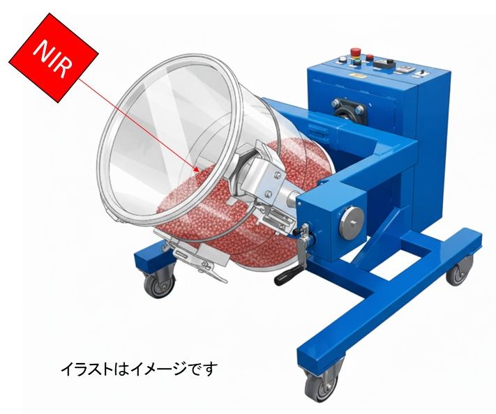 今回は小型の混合機「タンブラーミニ」を使い、プロテイン粉末と色素粉末を用いて混合テストを行いました。